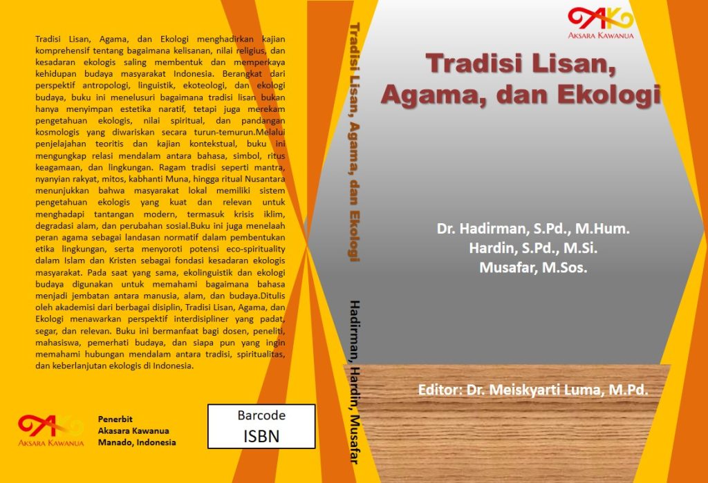 Tradisi Lisan, Agama, dan Ekologi disusun sebagai pembahasan komprehensif mengenai hubungan antara kelisanan, nilai religius, dan kesadaran ekologis dalam kehidupan budaya masyarakat Indonesia. Mengambil sudut pandang antropologi, linguistik, ekoteologi, serta ekologi budaya, buku ini menguraikan bagaimana tradisi lisan memuat bukan hanya estetika naratif, melainkan juga pengetahuan ekologis, nilai spiritual, dan pandangan kosmologis yang diwariskan lintas generasi. Uraian dalam buku ini menampilkan keterkaitan bahasa, simbol, ritus keagamaan, dan lingkungan sebagai bagian penting dalam konstruksi budaya Nusantara. Ragam tradisi seperti mantra, nyanyian rakyat, mitos, pantun, dan ritual Nusantara disajikan sebagai contoh bahwa masyarakat lokal menyimpan sistem pengetahuan ekologis yang relevan bagi dinamika kehidupan kontemporer, termasuk dalam menghadapi krisis iklim, degradasi alam, dan perubahan sosial. Pembahasan juga memaparkan peran agama dan kelisanan sebagai landasan normatif pembentukan etika lingkungan, serta memperlihatkan potensi eco-spirituality sebagai bingkai kesadaran ekologis masyarakat. Dalam konteks ekolinguistik dan ekologi budaya, buku ini menunjukkan bagaimana bahasa berfungsi sebagai jembatan makna antara manusia, alam, dan budaya. Kehadiran buku ini diharapkan dapat menjadi rujukan bagi dosen, peneliti, mahasiswa, dan pemerhati budaya yang ingin mendalami relasi mendalam antara tradisi, spiritualitas, dan keberlanjutan ekologis di Indonesia.